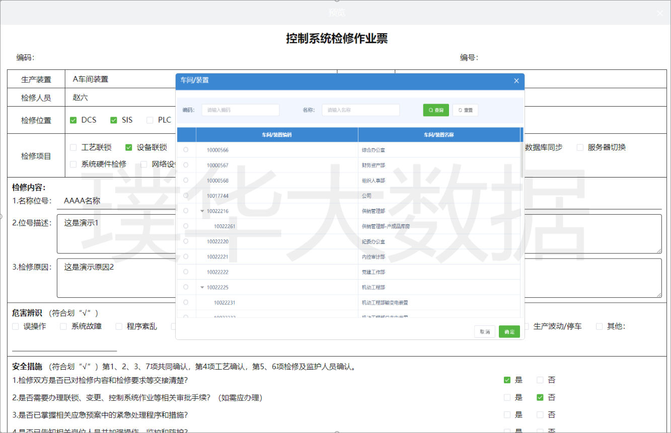 璞华大数据HawkEye作业票管理系统,实现了作业票全过程的信息化管理,主要实现了以下功能: